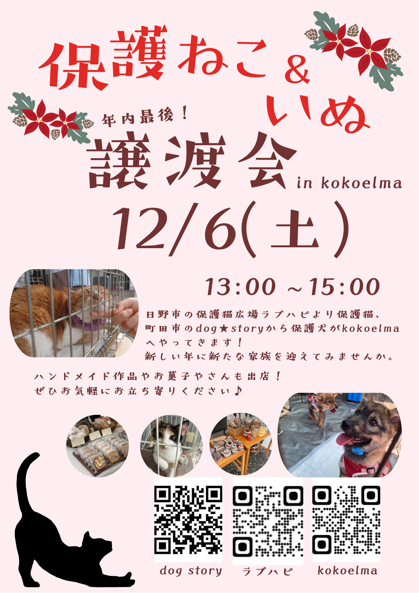 11月に続き、保護ねこ&いぬ 譲渡会inkokoelma開催します!